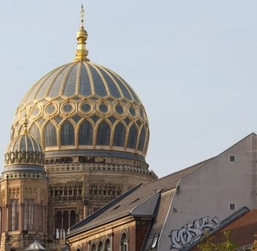 Chegada ao aeroporto de Berlim e transfer privado para Berlim com o seu veículo ou ônibus privado e um motorista/guia ou guia de língua português o espanhol. Comece com uma visita a Berlin Mitte, o bairro do centro histórico de Berlim, onde se encontram muitas das principais atrações da cidade. Desfrute de um passeio a pé pelo antigo bairro judeu, que está sempre a evoluir e a mudar. Ao longo do percurso, ouça histórias da vida judaica em Berlim, do passado ao presente, enquanto visita a antiga (a antiga sinagoga foi destruída em 1942, mas pode visitar a placa memorial e o contorno da sinagoga marcado com pedras